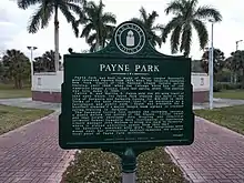 - 1 2 "Payne Park Historical Marker". 2000 Adams Lane, Sarasota, FL: Sarasota History Alive!. Sarasota County Historical Commission. 1996. Retrieved April 3, 2018.