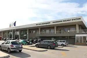 Pazardzhik Railway Station (Bulgarian: Железопътна гара Пазарджик, romanized: Zhelezopatna gara Pazardzhik) is a railway station located in the southern area of Pazardzhik, Bulgaria and serving as the main station for both the city and its municipality.