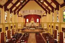 On November 3, 1994, the repair works and repainting of the exterior walls were resumed. The broken window panes, and partly corroded steel window frames were replaced and strengthened. The towering belfry, however, remained untouched.