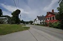 The historic district is centered at the junction of Bayley-Hazen Road with Church Street and Old Cemetery Road, extending a modest distance to the north, east, and south. It extends further to the west on Church Street and Macks Mountain Road, where the academy, church, and some other civic buildings and residences stand. Also found in this area is the town common, at the triangular junction of Academy Hill Road, Church Street, and Macks Mountain Road, where the town's war memorial is located. Most of the village's buildings are modestly scaled 1-1/2 to 2+1⁄2-story wood-frame structures, built either in the Federal or Greek Revival style.[2]