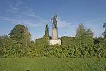 In the city park in Chlumec nad Cidlinou The Peasant Riots Monument was erected in 1937,[10] as a reminder of the revolt and the last battle of the revolt, by the sculptor Jakub Obrovský. Memorial is made in the form of a larger-than-life statue of a peasant armed with a scythe adapted to the function of a slashing weapon.