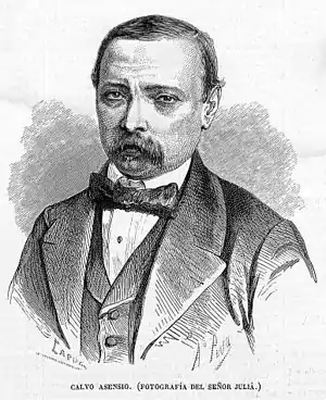 Pedro Calvo Asensio (18211863) was a Spanish playwright, journalist, left-wing politician and Spanish deputy of the 19th century. He was one of the most important Spanish politicians of his time. He owned and managed the newspaper La Iberia, one of the most important newspapers of the middle century in Spain.
