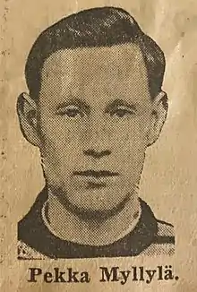 Pekka Aleksander Myllylä (born 7 July 1932) is a Finnish ice hockey goalkeeper. He competed in the men's tournament at the 1952 Winter Olympics. In Finland, he represented team Ilves during 1950–1958 and won the Finnish Championship three times. (1951, 1952 and 1957). He also played in the national ice hockey team five times.[1][2][3] He was born in Tampere.