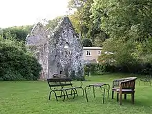 Little remains of the original monastic site except a ruined 12th century chapel in the grounds.[2] It is called St. Deniol's church and has a Flemish chimney.[3]