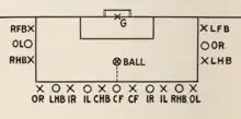 - ↑ Taking more than two steps while holding the ball in own half; also, before 1901, handling the ball in own half for a purpose other than defence of the keeper's goal.