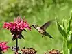 Ruby-throated hummingbird (left) feeding on a bergamot flower outside the White Cedar Nature Center (right)