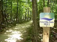 Sunset Bike Trail is a 5.1-mile (8.2 km) paved/gravel trail that snakes through Peninsula's and hardwoods and marshes. The entire route is 9.5 miles (15.3 km) and takes about one hour to bike and three hours to hike. Sunset Bike Trail provides a safe and scenic alternative to Shore Road for bikers and hikers. Riders are not required to have a Wisconsin State Trail Pass.