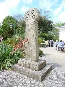 In July 1899 it was moved to Morrab Gardens and moved again in 1953 to Penlee Park. On 23 September 1997 the cross was erected at its present position by the new entrance to Penlee House. All four sides of the cross can be examined. The height is 2.07 m; width of head 0.685 m; width of shaft at base 0.635 m; width of shaft at neck 0.495 m; thickness 0.265 m[7]