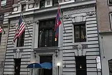 The Yale Club sold an option on the building in April 1916 to another club, which the Yale Club's president declined to identify.[62] A holding company, operated by Delta Kappa Epsilon (DKE) fraternity, bought 30 West 44th Street in July 1916.[63][64] At the time, the building was valued at $390,000.[64] The fraternity's members were spread across 35 chapters and 43 alumni associations, but DKE did not have a central headquarters.[65][63] DKE spent $75,000 renovating the clubhouse. The ground-floor and basement entrances were modified, and Oswald C. Hering and Douglas Fitch designed a penthouse with locker rooms and squash courts.[65] DKE dedicated the clubhouse on January 12, 1917, with 400 guests attending a party on the tenth floor.[66][67] DKE stayed in the building for eight years.[65] The clubhouse hosted events such as fundraisers,[68] the fraternity's 75th-anniversary celebration,[69] and a dinner for former Cuban president Mario García Menocal.[70]