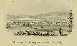 The first frame dwelling at Penn Yan was built in 1799. The village became the county seat in 1823, when Yates County was created. It was incorporated in 1833.[4]