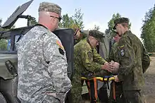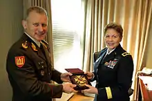 The Pennsylvania-Lithuania National Guard Partnership is one of 25 European partnerships that make-up the U.S. European Command State Partnership Program and one of 88 worldwide partnerships that make-up the National Guard State Partnership Program.[2] The Partnership was established on April 27, 1993. In the 30 years that have followed, Pennsylvania and Lithuania have conducted more than 500 exchanges that cover diverse topics such as Senior Leader Engagements, Recruiting, NCO Professional Development, Military Decision Making Process and Strategic Planning, Range Development, Airfield Development and Standards, Defense Support to Civil Authorities, Family Programs, and Resiliency. Also, Pennsylvania and Lithuania have jointly deployed to Afghanistan in support of ISAF, including four rotations of a Police Operational Mentor and Liaison Team. Pennsylvania also provided nine rotations of a team of Logistics Advisors to the Lithuanian led Provincial Reconstruction Team in the Gowhr Province. Pennsylvania and Lithuania are looking at other opportunities to jointly deploy to further expand the relationship between their militaries.
