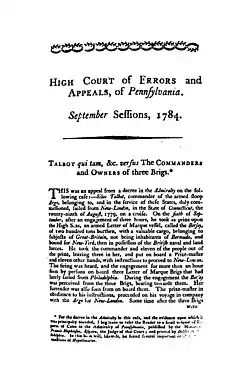 | Talbot v. Commanders of Three Brigs | 1 U.S. (1 Dall.) 95 (Pa. Ct. Err. & App. 1784) | full opinion | |