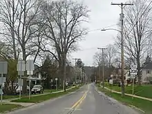 The route begins in Lawrence County where US 422 meets the Ohio state line; PA 208 heads east-northeastward to the village of New Bedford about a mile from the state line. The route junctions with the former PA 932 in the village and was the former alignment of US 422 from the state line to this point, where the old alignment turned southeast; PA 208 continues eastward here. About 3.5 miles (5.6 km) later, it is joined by PA 551 and the concurrency turns northward for about 0.5 miles (0.80 km) before turning east again as it crosses the Shenango River and enters the village of Pulaski. The concurrency ends 0.3 miles (0.48 km) later, and PA 208 continues another 0.3 miles (0.48 km) to its interchange with Interstate 376 (I-376). From here, the route heads into a rural area of northern Lawrence County that is home to an Amish community.[2] The road continues another 3.6 miles (5.8 km) east, where it junctions with PA 18 about 1.4 miles (2.3 km) west of the borough of New Wilmington, which the route enters shortly thereafter. In the borough, PA 158 joins briefly, and then leaves the route at the northern terminus of PA 956. PA 208 passes north of Westminster College before it leaves the borough and continues eastward about 3 miles (4.8 km) to the borough of Volant, where, at the east end of the borough, the route intersects with the northern terminus of PA 168 and turns northeast and crosses the county line 0.7 miles (1.1 km) later.