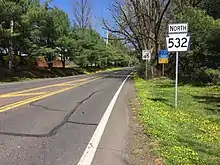 Pennsylvania Route 532 (PA 532) is a 19.1-mile-long (30.7 km) state route located in the Philadelphia, Pennsylvania area. The route runs from an intersection with U.S. Route 1 (US 1) in Northeast Philadelphia north to an intersection with PA 32 in Washington Crossing near the Washington Crossing Bridge over the Delaware River. The route passes through developed areas in Northeast Philadelphia before heading north through suburban Bucks County, serving Feasterville, Holland, and Newtown before coming to Washington Crossing.