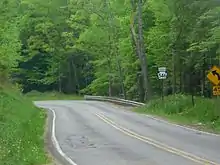 Duke Center Road, the road that continues north into New York, was originally designated as County Route 45 in Cattaraugus County,[8] but the designation was decommissioned and turned over to the town of Allegany.[9]