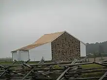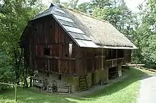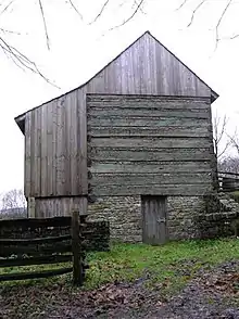 A Pennsylvania barn is a type of bank barn built in the United States from about 1790 to 1900. The style's most distinguishing feature is an overshoot or forebay, an area where one or more walls overshoot its foundation. These barns were banked and set into a hillside to ensure easy access to the basement and the level above. Almost all Pennsylvania barns also have gable roofs.[1] Barn scholar Robert Ensminger classified the Pennsylvania barn into three types: Standard Pennsylvania, Sweitzer, and Extended Pennsylvania barns.[2]: 56 The Pennsylvania-style barns were also built in the Shenandoah Valley, as well as west of Pennsylvania and in Canada.