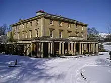 Penpont is a seventeenth-century Grade I listed[1] manor house in the Usk valley between Brecon and Sennybridge in Powys, Wales. It was built by Daniel Williams on the site of, and perhaps incorporating, an earlier house, Abercamlais-isaf (Welsh:lower Abercamlais). The frontage dates from 1815.[2] Penpont Bridge, a grade II* listed structure, spans the Usk by means of four segmented stone arches. The gardens at Penpont are influenced by Repton but have a long history from the seventeenth century with the addition of a celebrated Green Man maze in recent years. They are listed Grade II* on the Cadw/ICOMOS Register of Parks and Gardens of Special Historic Interest in Wales.[3]