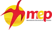 The People's Electoral Movement (Dutch: Electorale Volksbeweging, Papiamento: Movimiento Electoral di Pueblo, MEP) is a social democratic political party in Aruba. Following the 2001 general election for the Parliament of Aruba the party won 52.4% of popular vote and 12 out of 21 seats. In the 2005 general election, the party won 43% of the popular vote and 11 out of 21 seats thus won the election and remained in power. In the 2009 general election, MEP lost 2 seats and won 36% of the vote, subsequently losing the election.