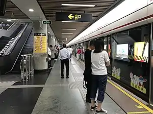 In early 2009, a new side platform for Line 8 riders heading south (to Shendu Highway) opened. This platform was converted from a former link to Line 1.[9] Passengers from Shiguang Road station heading south can exit from either door.