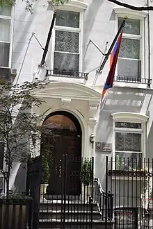 Since 1993, the Permanent Mission of Armenia to the United Nations is housed at 119 East 36th Street in Manhattan, New York. In 1993, the building was presented as a gift to the Government of Armenia by Kevork and Sirvart Hovnanian, members of the prominent Hovnanian family known as much for their construction business as their philanthropy in Armenia and the Diaspora. The property became the first to be owned by Armenia abroad.[8]