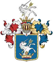 The Perneszy family's first known member is I. Budur (Bwdwr), a nobleman who lived in 1206. His grandson, Ladislas de Osztopán, son of another (II.) Budur, had several offspring. One of his sons was I. Peter de Osztopán, who was the father of master I. Pető de Osztopán alias Perneszy de Osztpán who lived in 1354 in the Hungarian Somogy County. This I. Pető Perneszy married Katich Egudi, daughter of master John Egudi János, and increased his land possessions.[1] I. Pető and Katich Egudi's grandson, Paul Perneszy de Osztopán, son of II. Peter Perneszy, became one of the most relevant members of the Perneszy family. Master Paul Perneszy was the landlord of the states in Kapós and in Pernesz, located in the valley Kis-Koppány: in total he possessed 22 states. Paul Perneszy became in 1444 vice-ispán of Somogy county, and was a personal assistant of the magnate Ladislaus Garai, who was the Palatine of Hungary. Between 1447 and 1460, Paul Perneszy became the vice-Palatine of Hungary, which was the third most important office in the Kingdom for that time. June 5 of 1439, he received a coat of arms donation from King Albert of Hungary.[2] During his life, master Paul Perneszy received many new states donations in Somogy county including: Mérő, Torvaj, Szenna, Szomajom, Kalocsafalva, Kiskára and Bárd. After a time, he became the personal assistant of Nicolas Újlaki, and Paul was the vice-ban of Croatia and Slavonia in 1464, until 1470 when he died.[3] Paul Perneszy had a wife, Ursula Zápolya (Szapolyai), member of the aristocratic Zápolya family, who was the cousin Stephen Zápolya, Palatine of the Kingdom of Hungary between 1492 and 1499. As no documentation remained that named the mother of Paul's children, it cannot be known if Ursula Zápolya was in fact just a younger second wife, or the real mother of the children.