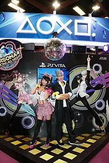 A booth at a comic convention in Taiwan in August 2015 advertising Persona 4: Dancing All Night