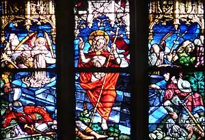 The Resurrected Christ - detail from the Council Window of 1480 in Ulm Minster.