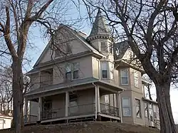 The Peter J. Paulsen House is a historic building located on the hill above downtown Davenport, Iowa, United States. The Queen Anne style residence was built by Peter J. Paulsen, who operated a grocery store on West Second Street. It exhibits the features that are characteristic of this popular late 19th-century style: an asymmetrical composition, irregular roofscale, and a corner tower with a conical roof.[2] The tower itself rises out of an oriel window on the first and second floors. The Paulsen house also maintains some if its exterior features, including scallop-shaped wall shingles in the gables and narrow clapboards. The south gable also contains a Palladian window and the front gable a semicircular window. The house has been listed on the National Register of Historic Places since 1983.[1]