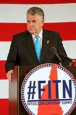 King was one of five New York Republicans in the House to vote against the Tax Cuts and Jobs Act of 2017.[44] He voted against it due to the $10,000 cap the bill would impose on the deductibility of state, local, and property taxes and the impact that would have in New York, a high-tax state.[45] Upon the possibility of a second round of cuts, King reiterated he would be "forced to oppose" more tax cuts if legislation included a provision "permanently extending the $10,000 cap on the state and local tax (SALT) deduction".[46] Only twelve Republican members of Congress in total voted against the bill.[47]