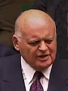 He first entered Parliament in the 1959 general election, representing Nottingham West.[2] After losing his seat at the 1964 general election, he was selected for Horncastle, representing the constituency from 1966 to 1983. In 1983, boundary changes moved Tapsell to East Lindsey, which he represented until 1997 when further boundary changes moved him to Louth and Horncastle. Tapsell was knighted in 1985.[4] Tapsell was a long-time supporter of Keynesian economics, and opposed the monetarist policies of Margaret Thatcher's governments. In 1981, he voted against Sir Geoffrey Howe's Budget – becoming, as Peter Oborne noted, "the first Conservative since Harold Macmillan in the 1930s to vote against a Budget, a brave move which turned him into an internal political exile."[5]