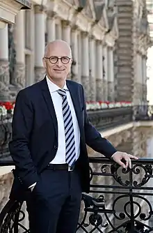 Tschentscher joined the Social Democratic Party in 1989. From 2007 until 2018 he served as chairman of the SPD district Hamburg-Nord.[1] He was first elected to the Hamburgische Bürgerschaft in the 2008 state elections. From 2008 until 2011 he served on the Budget Committee. In addition, he led a parliamentary inquiry into cost overruns in the construction of the Elbphilharmonie from 2010.