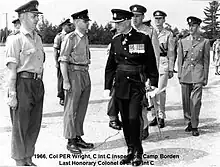 Colonel Peter. E. R. Wright shown here inspecting Militia Intelligence Sections taking part in the summer concentration training period in 1966.