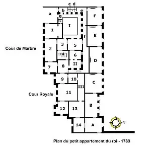 ![]() Plan of the petit appartement du roi ca. 1789 | |