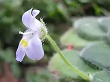 Petrocosmea forrestii is a species of flowering plant in the family Gesneriaceae native to China,[1] and sometimes cultivated as a houseplant. It grows among rocks in shady places.[1] Like other species in its genus, it does not develop a stem above ground, but spreads by rhizomes.[2] The entire rosette of leaves is less than 15 centimetres (5.9 in) in diameter.[1]