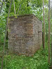 A static flame trap allowed a length of road, typically 60 to 150 ft (18 to 46 m), to be covered in flame and smoke at a moment's notice.[27] The weapon was a simple arrangement of perforated pipes placed alongside a road.[28] The pipes were steel, 1–2 inches (25–51 millimetres) in diameter and drilled with 1⁄8 in (3.2 mm) holes at angles carefully calculated to cover the road evenly.[27] The perforated pipes were connected to larger pipes that led to a tank of fuel in a raised position. The fuel mixture was 25% petrol and 75% gas-oil that was contrived to be of no use as motor vehicle fuel should it be captured. All that was required to trigger the weapon was to open a valve and for a Home Guard to throw in a Molotov cocktail creating an inferno. The ideal location for the trap was a place where vehicles could not easily escape, such as a steep-sided sunken road. Some trouble was taken with camouflage; pipes could be hidden in gutters or disguised as handrails; others were simply left as innocent-looking plumbing.[25]