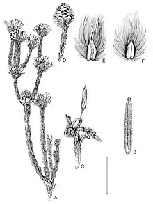 | A=flowering and fruiting branchlet; B=leaf; C=flower; D=fruiting branchlet; E,F=upper and lower surface of nut | |