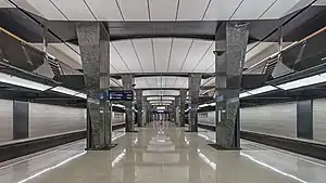 Petrovsky Park (Russian: Петровский парк) is a station on the Bolshaya Koltsevaya line of the Moscow Metro. It served the eastern terminus of the line until 30 December 2018, when the extension of Bolshaya Koltsevaya to Savyolovskaya opened. It opened on 26 February 2018 as one of five initial stations on the new line.[4] Petrovsky Park allows transfers to Dinamo Station on the Zamoskvoretskaya line since 29 December 2020.