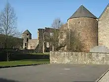 At the beginning of the 14th century Arnold of Pettingen married Marguerite of Rousy, the great granddaughter of Ermisinde. He had a son, Arnold the Young, whose daughter Irmengard, by marrying Jean de Créhange, associated the Lords of Pettingen with his renowned family. Their grandson, also called Jean, fought for René, the Duke of Lorraine in the war against Charles the Bold, Duke of Burgundy. In revenge, Charles completely destroyed the Castle of Pettingen whose treasures were confiscated by the Governor of Luxembourg in 1494. However, as a result of a decree made at the Great Council of Mechelen in 1503, half of the treasures were returned and the castle was reconstructed in its present form. The four corner towers were added in 1571. In 1684 Louis XIV's troops bombarded the castle, leaving it as it stands today. The ruins, which belonged to the house of Créhange, were inherited by the Comtes de Lapérouse whose descendants sold it to the Duke of Arenberg in 1837.[1] In 1910 his descendant, the Prince of Arenberg, removed everything of value from the castle. In 1920 the southern wall collapsed.[2]