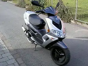 The Peugeot Speedfight is a scooter made by Peugeot Motocycles. It is available in 50 cc (3.1 cu in) and 100 cc (6.1 cu in) models, with the 50 cc moped model being used by holders of restricted licences worldwide. It is available in air- or more expensive liquid-cooled versions.