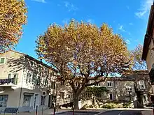 Peyriac's main square with its centenary plane trees