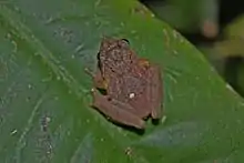 - ↑ IUCN SSC Amphibian Specialist Group (2022). "Philautus petersi". IUCN Red List of Threatened Species. 2022: e.T195938442A64130317. Retrieved 24 December 2022.