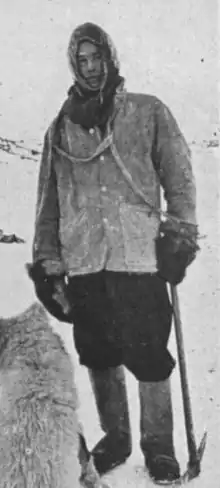 He was not chosen for the polar party, but was part of the support party which accompanied them for part of the way.[10] The four-man polar party, intending to reach the South Pole, eventually reached a Farthest South latitude of 88° 23' S, 97.5 nautical miles (180.6 km; 112.2 mi) from the pole.[11]