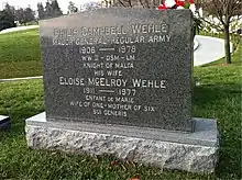 He was interred together with his wife Eloise McElroy Wehle (1911-1977) in Arlington National Cemetery.[7]