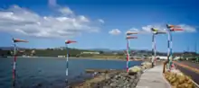 In 2010 the Wellington Sculpture Trust commissioned Akau Tangi, a wind powered sculpture installed on Cobham Drive, Wellington. The eight poles, some partly submerged in the sea, are each topped with a rotating cone that produce a low level musical note. The rotating cones also have an internal light source powered by the wind driven rotating cones.[3]