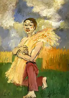 During the 1950s Evergood departed from his established "Social Realism" style and concentrated on symbolism, both biblical and mythological. A characteristic work of this period in Evergood's life is The New Lazarus, painted in 1954 and presently housed in the Whitney Museum of American Art.[3]