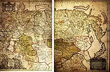 Map of Russia in 1725, drawn by Philip Johan von Strahlenberg and Johan Anton von Matern