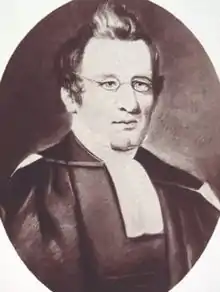 Palmer arrived in the colony in 1833, and was placed in charge of Holy Trinity in North Hobart and St John's in New Town. He also took services at the penitentiary and the hospital. Archdeacon William Broughton limited his duties as rural dean to those of correspondence in order to prevent friction with the man he replaced as senior clergyman in the colony, William Bedford. Palmer, however, took Bedford's place on the Legislative Council, and Bedford resented the intrusion. He subsequently brought false rumours regarding Palmer's clerical conduct to Lieutenant Governor George Arthur.[2] This made Arthur lose confidence in Bedford, but he appreciated Palmer's work. Palmer served on the Executive Council from 1834 to 1836.[1] However, when Archdeacon William Hutchins arrived in Van Diemen's Land in 1837, Palmer ceased to be rural dean. He was appointed acting archdeacon from Hutchins' death in 1841 until 1843 when Archdeacon Fitzherbert Marriott and Bishop Francis Nixon arrived in the colony.[1]