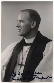Born in Lichfield on 29 July 1897,[2] he was educated at Eton College and New College, Oxford. After World War I service with the Royal Artillery he was ordained in 1923 and was a curate at Daybrook and St Mary Redcliffe, Bristol. Subsequently, he became the Precentor of Christ Church Cathedral, Montreal, then Vicar of Romford. He was consecrated as Coadjutor Bishop of Newfoundland on 1 August 1937 in Lambeth Palace Chapel and arrived in St. John's on 9 September.[3] In 1942 he became the diocesan bishop. His father[4] and grandfather[5] were also bishops.