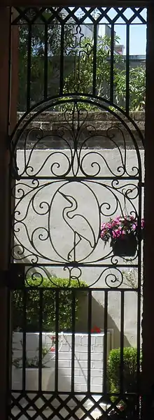 Although he officially retired at age 75, Simmons continued to teach his craft to younger artisans late into his life. In 1991, the Vestry of his church, St. John's Reformed Episcopal Church, formed the Philip Simmons Foundation, a nonprofit 501(c)(3) organization to develop and maintain a commemorative garden on the grounds of the church as a tribute to the man and his work.[3] The church and garden is located at 91 Anson Street in downtown Charleston, South Carolina. In 2004, a gate designed by Simmons and executed by artisans he taught received a commemorative plaque from the General Services Administration's Art in Architecture Program.[5]