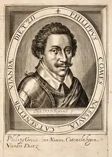 Philip of Nassau or Filips of Nassau (1 December 1566, Dillenburg 3 September 1595, Rheinberg) was a Count of Nassau, Katzenelnbogen, Vianden and Dietz, fought for the United Provinces during the Eighty Years' War. He was the son of John VI and Countess Elisabeth of Leuchtenberg.